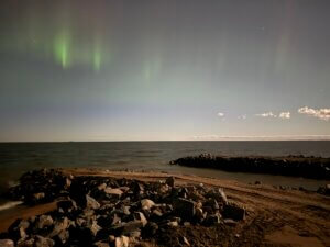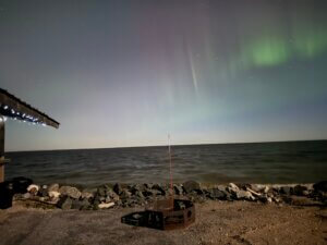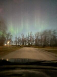 Dale and I calling it a day headed to the house 7:30 p.m. and Dale says “Northern Lights” my reply “let’s go see”. Off to our shoreline we go to catch these beautiful show!