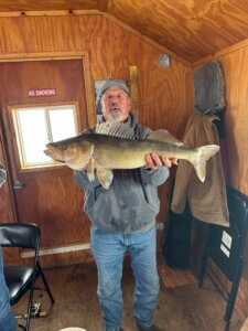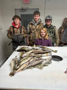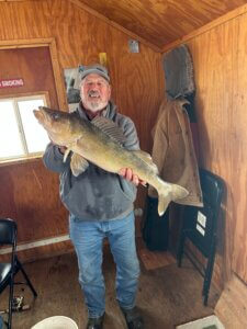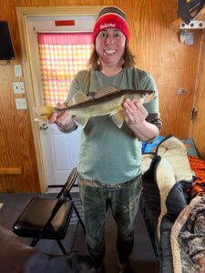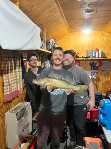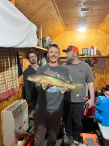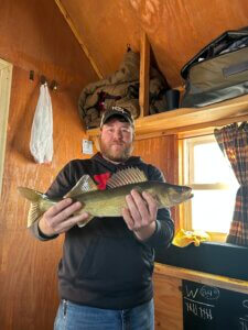 Hey just wanted to thank you for the great experience we had today fishing thru you guys…my 2.5 year old daughter caught a lot of fish with one being 21 inches long and she reeled it all on her own wouldn’t even let dad help hold the rod lol she even got a midafternoon fish house nap in to rest up for the evening bite…we left 3 saugers short of a 3 person limit fishing 5 out of 6 rods all day plus threw a lot of little ones back so it was a great day of fishing. Thanks again and happy new year’s!!!