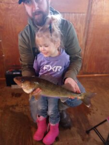 Hey just wanted to thank you for the great experience we had today fishing thru you guys…my 2.5 year old daughter caught a lot of fish with one being 21 inches long and she reeled it all on her own wouldn’t even let dad help hold the rod lol she even got a midafternoon fish house nap in to rest up for the evening bite…we left 3 saugers short of a 3 person limit fishing 5 out of 6 rods all day plus threw a lot of little ones back so it was a great day of fishing. Thanks again and happy new year’s!!!