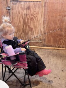 Hey just wanted to thank you for the great experience we had today fishing thru you guys…my 2.5 year old daughter caught a lot of fish with one being 21 inches long and she reeled it all on her own wouldn’t even let dad help hold the rod lol she even got a midafternoon fish house nap in to rest up for the evening bite…we left 3 saugers short of a 3 person limit fishing 5 out of 6 rods all day plus threw a lot of little ones back so it was a great day of fishing. Thanks again and happy new year’s!!!